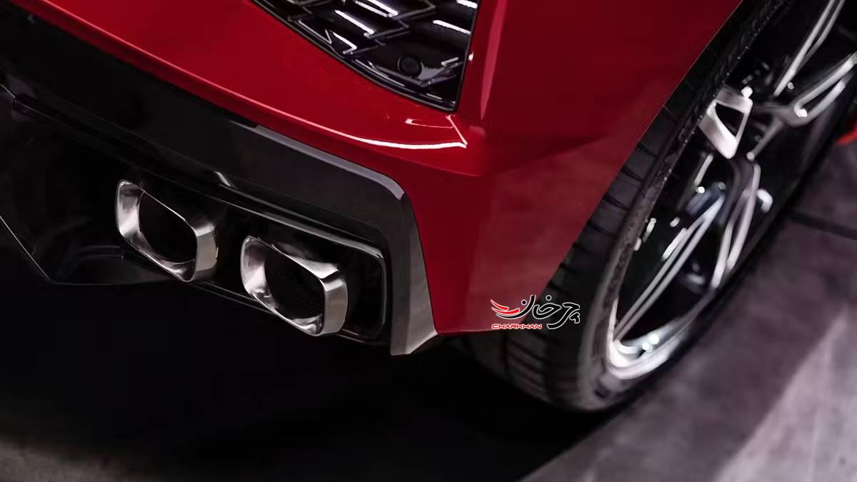 در بخش ظاهری این خودرو اسپرت به چراغهای الایدی، چرخهای جلو آلومینیومی ۱۹ اینچی، چرخهای آلومینیومی ۲۰ اینچی در عقب، حاشیه کربنی در جلو و جلو پنجره پشتی و… میرسیم.
